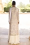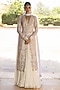 Arpita Mehta features a mesmerizing Coconut and Lavender Kurta Set that captivates with its elegance. The eye-catching kurta is crafted in georgette with hand embroidery. It is paired with sharara pants and a dupatta. Accessorize the designer kurta set with statement earrings and heels for a wedding or festive ceremony, showcasing style and sophistication.