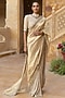 Arpita Mehta features a mesmerizing Gold Saree Set that captivates with its elegance. The eye-catching saree is crafted in tissue and georgette with hand embroidery. It is paired with a georgette blouse. Accessorize the designer saree set with statement earrings and heels for weddings, showcasing style and sophistication.