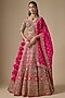 Hot Pink Net Floral & Thread Embroidered Lehenga Set