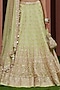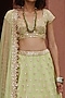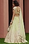 Featuring a mint green lehenga in an organza base with thread and mirror hand embroidery. It is paired with a matching blouse and a dupatta.