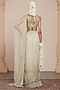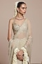 Featuring a mother of pearl-colored saree in net base with mirror and sequins embroidery. It is paired with an embroidered blouse. Style this saree with diamond jewellery, block heels and a sleek bun, an ideal choice for your wedding day, sangeet or engagement ceremony.