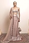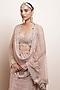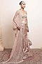 Featuring an old rose draped saree in silk tissue base with embroidery. It is paired with a net embroidered blouse. Style this saree with kundan jewellery, block heels and a sleek bun, an ideal choice for your wedding day, sangeet or engagement ceremony.