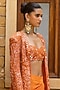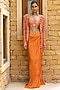 Arpita Mehta features a mesmerizing Orange Skirt Set that captivates with its elegance. The eye-catching skirt is crafted in crepe silk. It is paired with a net blouse having sequins and mirror hand embroidery, including a hand-embroidered jacket. Accessorize the designer skirt set with statement earrings and heels for weddings, showcasing style and sophistication.