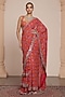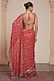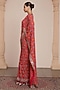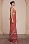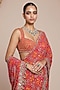 Featuring a pink and rose gold tiered ruffled saree in georgette base with thread embroidery. It is paired with a blouse. Style this set with diamond jewellery, block heels and a sleek bun, an ideal choice for your wedding day, sangeet or engagement ceremony.