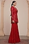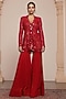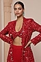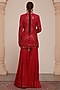 Featuring a red jacket in net and georgette base with embroidery. It is paired with an embroidered blouse and gharara pants. Style this set with diamond jewellery, block heels and a sleek bun, an ideal choice for your cocktail, sangeet or grand festive ceremony.