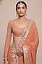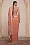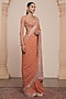 Featuring a toasted orange and rose gold saree in georgette base with star boota detailing. It is paired with a blouse. Style this saree with diamond jewellery, block heels and a sleek bun, an ideal choice for your wedding day, sangeet or engagement ceremony.