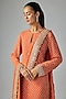 Featuring a toasted orange kurta in silk base. It is paired with a churidar and a georgette dupatta. Accentuate it with polki jewellery and wedges for a festive look or a wedding ceremony.