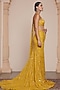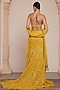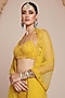 Featuring a yellow skirt in net base with embroidery. It is paired with an embroidered blouse and a cape. Style this set with diamond jewellery, block heels and a sleek bun, an ideal choice for your cocktail, sangeet or grand festive ceremony.