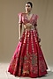 Hot Pink Raw Silk Handpainted Lehenga Set
