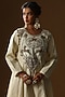 Featuring an ivory kurta in chanderi silk base with zig-zag boota and stripe texture detail. It is paired with chanderi pants and a chanderi striped dupatta. Accentuate the designer set with swarovski jewellery, embellished heels and a potli bag for a look, Perfect wear for a festive, sangeet or pooja ceremony.