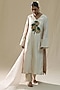 Featuring an ivory kurta in summer silk base with handpainted. It is paired with pants and an organza dupatta. Accentuate it with dangler earrings and heels for a festive occasion or pooja ceremony.