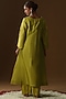 Featuring a lime green and blue half-n-half kurta in chanderi silk base. It is paired with chanderi pants and a chanderi dupatta having zari border. Accentuate the designer set with swarovski jewellery, embellished heels and a potli bag for a look, Perfect wear for a festive, sangeet or pooja ceremony.