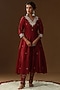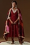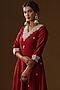 Featuring a maroon kurta in chanderi silk base with motif hand painting and embellishments. It is paired with chanderi pants and a chanderi hand painted dupatta. Accentuate the designer set with swarovski jewellery, embellished heels and a potli bag for a look, Perfect wear for a festive, sangeet or pooja ceremony.