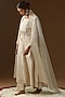Featuring an off-white kurta in chanderi silk base with thread and zari embroidery. It is paired with chanderi pants and an organza embroidered dupatta. Accentuate the designer set with swarovski jewellery, embellished heels and a potli bag for a look, Perfect wear for a festive, sangeet or pooja ceremony.