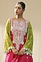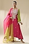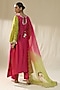 Featuring a carrot green and pink ombre kurta in chanderi silk base with handpainted. It is paired with cotton silk pants and an organza dupatta. Accentuate it with dangler earrings and heels for a festive occasion or pooja ceremony.