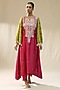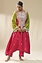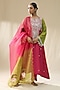 Pink & Carrot Green Chanderi Silk Handpainted Kurta Set