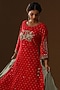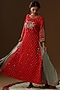 Featuring a red kurta in chanderi silk base with floral zari embroidery. It is paired with pants and an embroidered dupatta having zari border. Accentuate the designer set with swarovski jewellery, embellished heels and a potli bag for a look, Perfect wear for a festive occasion, sangeet or pooja ceremony.