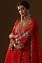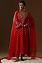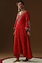 Featuring a red kurta in chanderi silk base with a sippi metal, sequins and pearl embroidery. It is paired with pants and an embroidered dupatta. Accentuate the designer set with swarovski jewellery, embellished heels and a potli bag for a look, Perfect wear for a festive occasion, sangeet or pooja ceremony.