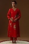 Red Summer Silk Floral Hand Painted Kurta Set