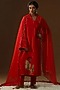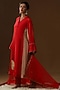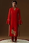 Featuring a red kurta in summer silk base with motif hand painting. It is paired with upada pants and an organza hand painted dupatta. Accentuate the designer set with swarovski jewellery, embellished heels and a potli bag for a look, Perfect wear for a festive occasion, sangeet or pooja ceremony.