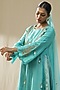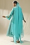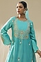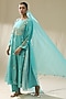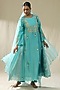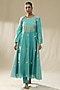 Featuring a sky blue A-line kurta in chanderi silk base. It is paired with cotton silk pants and an organza dupatta. Accentuate it with dangler earrings and heels for a festive occasion or pooja ceremony.
