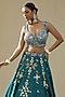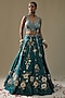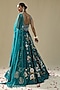 Featuring a teal green lehenga in raw silk base with handpainted. It is paired with a blouse and a net dupatta. Accentuate it with statement jewellery and heels for weddings or sangeet ceremonies.