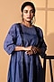 Featuring a bluish grey dress in handwoven khadi cotton jamdani base with printed grey khadi panel and an attached striped inner.