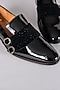 Featuring a pair of black shoes in patent leather base with a matt finish. It has a leather underlining and 0.75-inch heels.