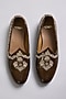 Featuring a pair of brown juttis in leather base with zardosi work. Accentuate it with a kurta-pyjama or an Indo-western set for an elegant ethnic ensemble, ideal for weddings, festive celebrations or family functions.