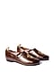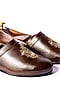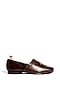 Featuring a pair of deep brown loafers in leather base with motifs. It has leather underlining and 0.75 inch heels.
