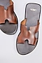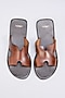 Featuring a pair of deep brown slippers in leather base. It has a leather underlining.