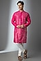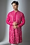 Featuring a rani pink kurta in chanderi silk base with mirror and thread handwork. Accentuate it with pants and mojaris for a festive occasion, cultural event, wedding or engagement ceremony.