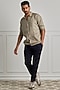 Featuring a light grey shirt in cotton linen base with patch pockets and stitch detailing. This contains only one piece.
