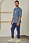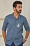 Featuring a royal blue shirt in cotton linen base with embroidered monotonic patch. This contains only one piece.