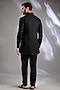 Featuring a black short kurta in linen base with tonal tape detailing. Style it with pants, a watch and mojaris for festive ceremonies or weddings.