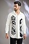 Featuring an ivory shirt in linen base with applique and 3D placement embroidery. Style it with pants, a watch and sneakers for cocktail soirees or an evening look.