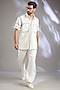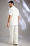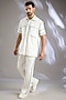 Featuring an ivory shirt style kurta in linen base with placement embroidery. It is paired with pants. Style it with a watch and sneakers for coffee runs or an evening look.