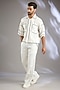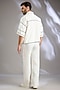 Featuring an ivory shirt in linen base with resham embroidery. It is paired with pants. Style it with a watch and sneakers for coffee runs or an evening look.