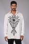 Featuring a white shirt in cotton satin base with silk velvet applique and resham embroidery. Accentuate it with pants, a watch and pair of shoes for a classy look, perfect for family gatherings, evening parties or cultural celebrations.