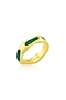 Gold Finish Textured Dark Green Enameled Ring In Sterling Silver
