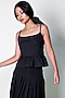 Featuring a black top in poplin base with hand embroidery. It is paired with a skirt. Accentuate it with statement earrings and block heels for an evening look.