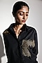 Featuring a black shirt in poplin base with melting zari motif hand embroidery. Accentuate it with pants, statement jewellery and heels for an evening look.