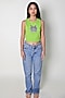 Featuring a green tank top in cotton knit base with logo detail and applique hand embroidery. Accentuate it with pants, statement earrings and block heels for an evening look.