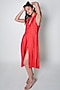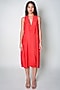 Red Cotton Silk Hand Embroidered Midi Wrap Blazer Dress