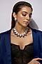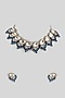 Featuring a black rhodium finish necklace studded with blue stone and uncut stones, set in mixed metal. It is paired with a matching pair of earrings. Perfect wear for a festive occasion or any celebration.