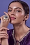 Featuring a gold finish ring studded with blue stones and pearls, set in mixed metal.