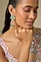 Featuring a pair of gold finish dangler earrings studded with kundan polki, emerald stones and pearls, set in mixed metal. Perfect for grand occasions like weddings and traditional festivities.