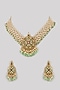 Gold Finish Pachi Kundan Polki & Mint Green Beaded Layered Necklace Set