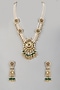 Gold Finish Pearl & Emerald Beaded Long Pendant Necklace Set