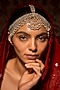 Featuring a gold finish mathapatti studded with pink kundan polki, set in mixed metal.